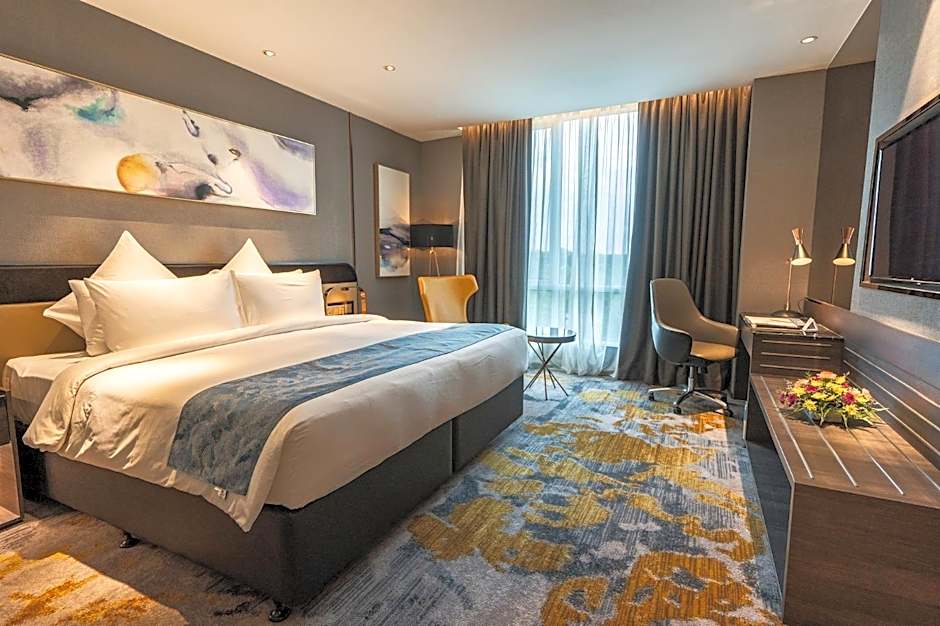 The air-conditioned suite has 1 bedroom and 1 bathroom with a bath and a shower. The suite features carpeted floors, a seating area with a flat-screen TV with satellite channels, a mini-bar, a wardrobe, as well as a safe deposit box. The unit has 1 bed.